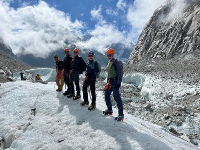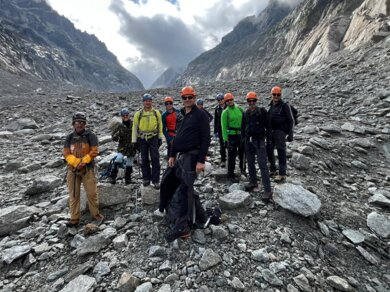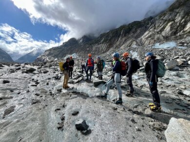 Accompanied by high mountain guides, discover the practice of cramponing. This will allow you to discover or review the basic techniques of mountaineering: use of crampons, ice axe handling, basic knots, roped walking. This outing will also be an opportunity to better understand the life of a glacier.