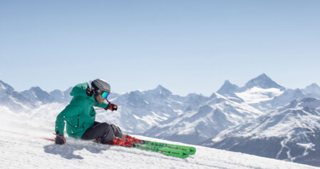 Reach the highest point of the resort—nearly 3,900 meters above sea level—by taking the highest cable car in Europe, the Matterhorn Glacier Paradise. The ascent itself feels like a spectacle, with breathtaking panoramas over the Matterhorn. At the summit, enjoy skiing amidst legendary Alpine peaks towering above 4,000 meters, such as the Breithorn (4,165 m), the Weisshorn (4,506 m), the Matterhorn (4,478 m), and even Mont Blanc on the Italian side (4,810 m).